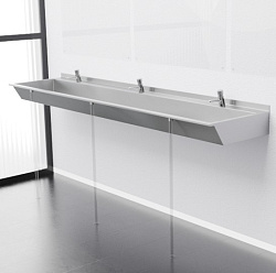 - Коллективные – от одного до трех метров в ширину. Предполагают возможность использования одновременно несколькими людьми. Их часто устанавливают в туалетах торговых центров, кинотеатров, общепита, мест лишения свободы и на других объектах.