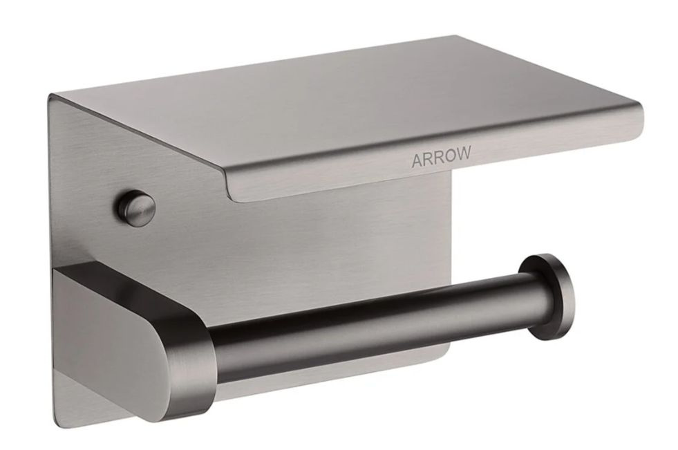 Аксессуар изготовлен в виде стержня, на котором закрепляют рулоны. Держатель туалетной бумаги с полкой для телефона AGJ2507GG имеет компактные размеры, лаконичное оформление и уместен в любой туалетной комнате. Для удобства использования его устанавливают на высоте 60-70 см от пола. Монтаж держателя туалетной бумаги можно провести и с правой, и с левой стороны от унитаза.