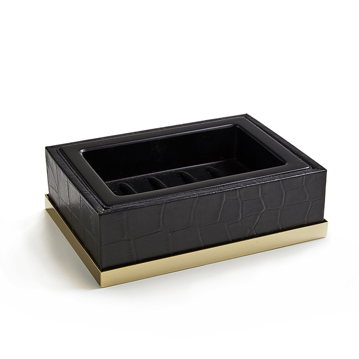 3SC COCCO Мыльница настольная, отделка: черная кожа,цвет: золото 24к. Lucido2194