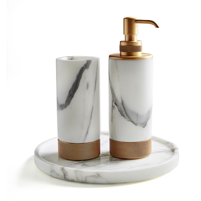 3SC APUANA 2.0 Комплект: стакан, дозатор и лоток, цвет: мрамор Bianco Statuario/oro rosa lucido2190