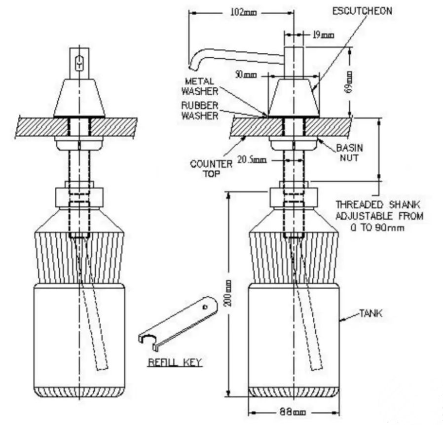 Порционный дозатор мыла Mediclinics DJT118 встраиваемый в столешницу