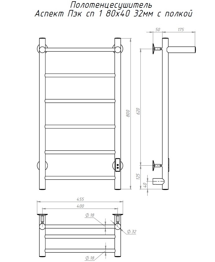 Антивандальный электрический полотенцесушитель Тругор Аспект ПЭК СП 1 П 80х40 см