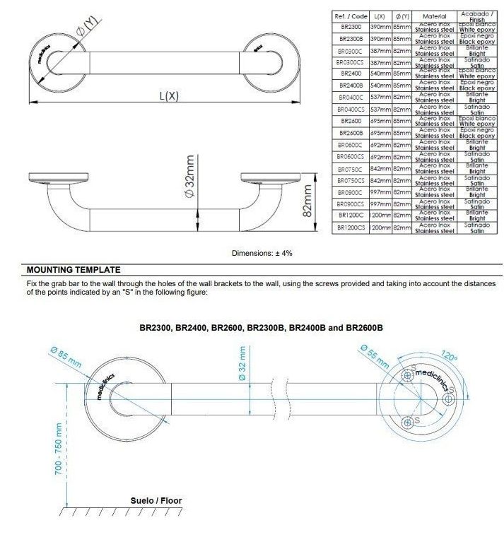 Mediclinics BR0600C Прямой поручень для инвалидов 692 мм (глянцевая нержавеющая сталь)