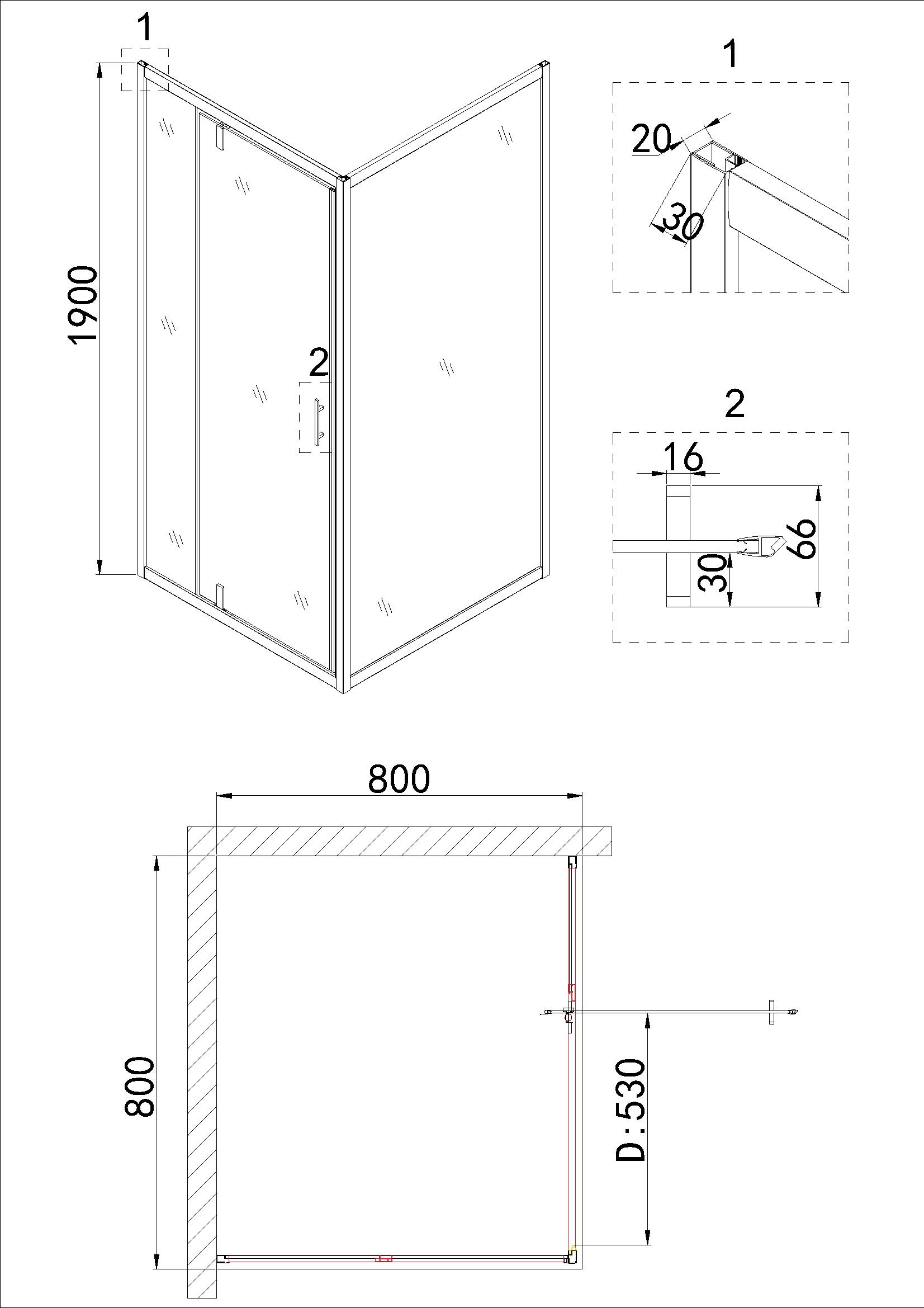 Душ.ограждение NG-63-8A-A80 (80*80*190) квадрат, дверь распашная,
