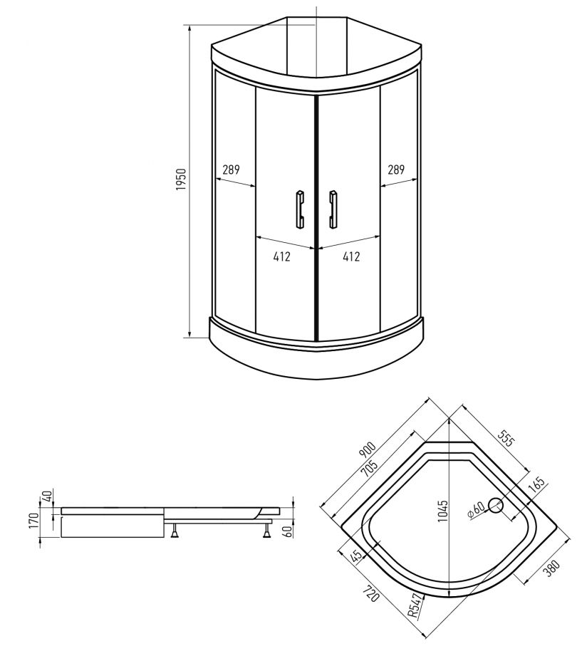 Душевая кабина ERLIT™ ER3509PE-C2-RUS (900*900*2150)