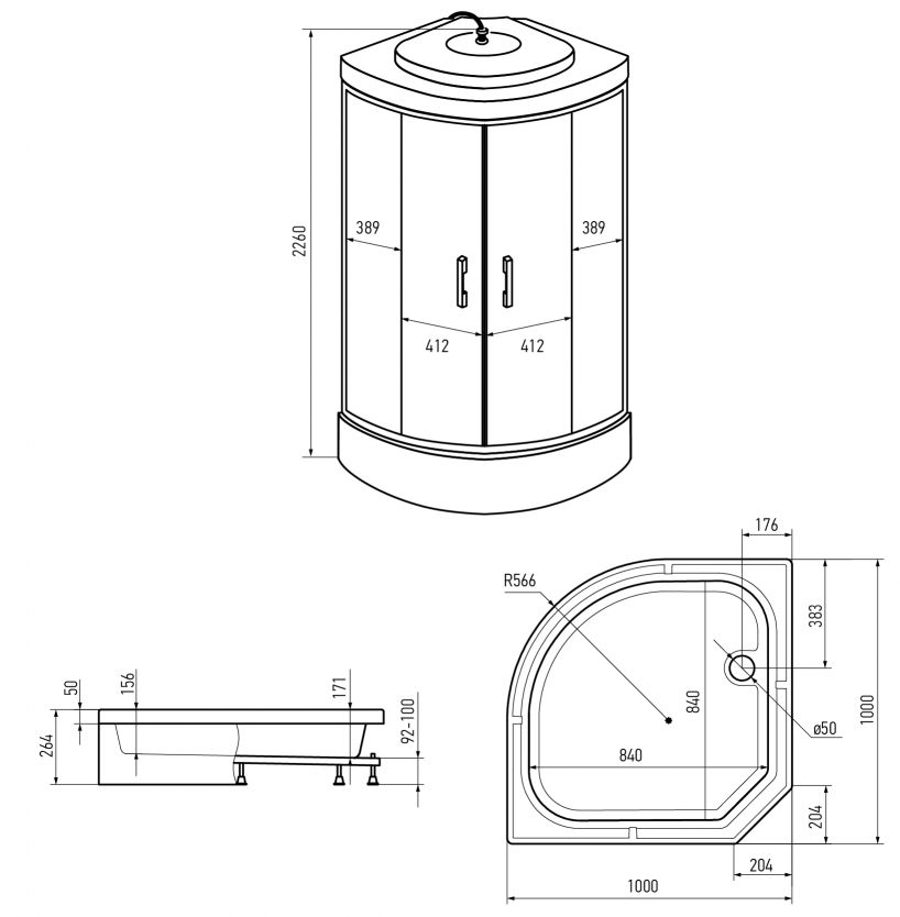 Душевая кабина ERLIT™ ER351026-C2-RUS (1000*1000*2260)