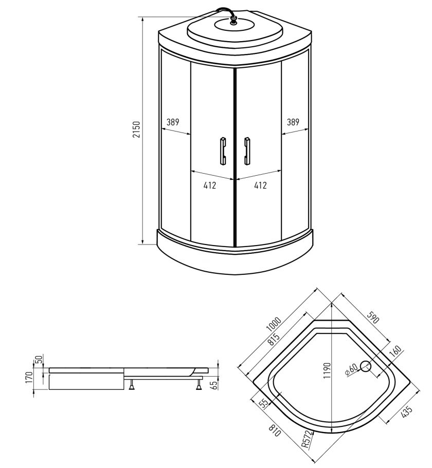 Душевая кабина ERLIT™ ER3510P-C2-RUS (1000*1000*2150)