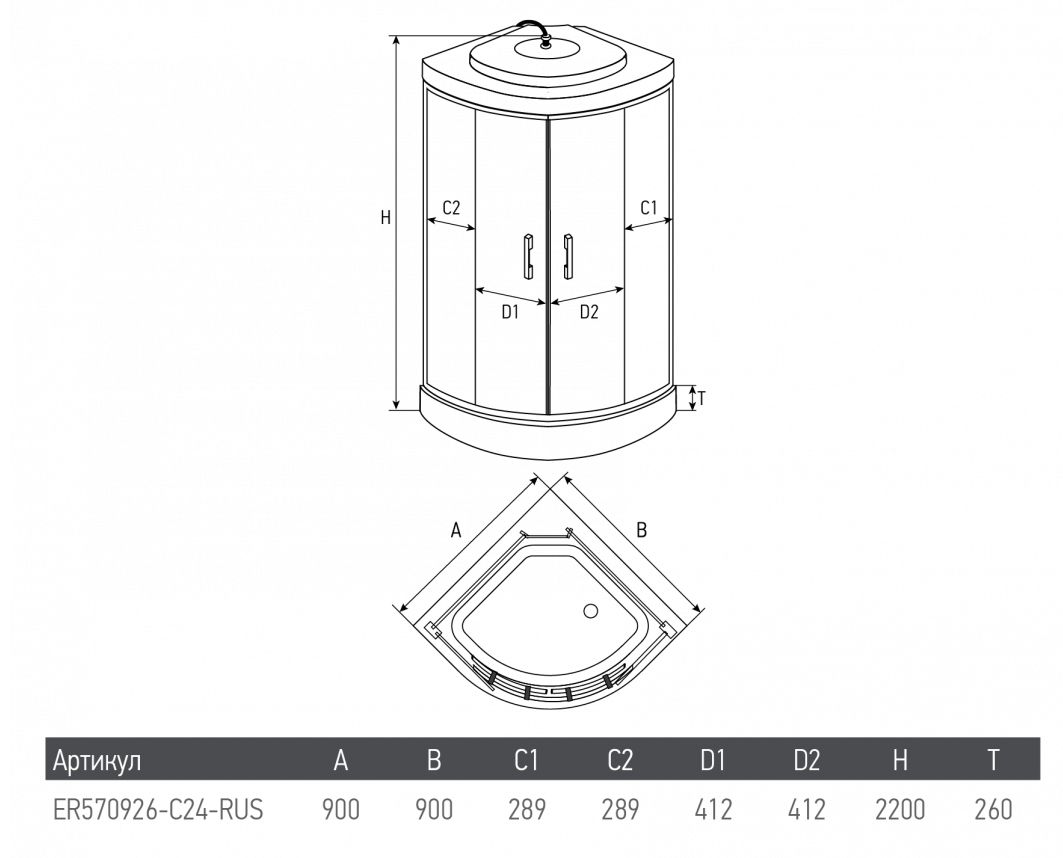 Душевая кабина ERLIT™ ER570926-C2-RUS (900*900*2200)
