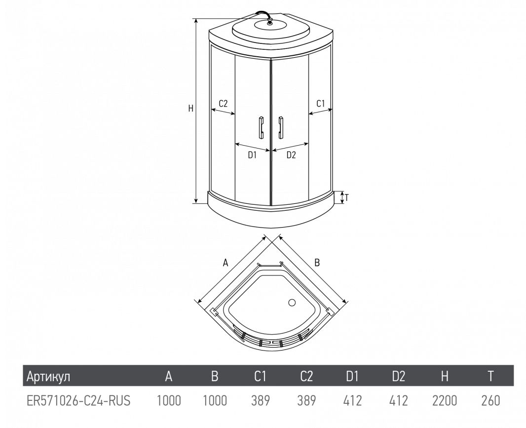 Душевая кабина ERLIT™ ER571026-C2-RUS (1000*1000*2200)