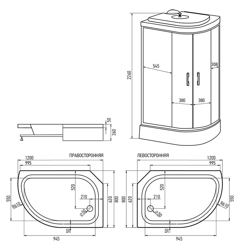 Душевая кабина ERLIT™ ER351226R-C2-RUS (1200*800*2260)
