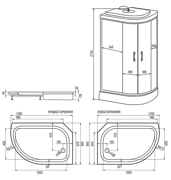 Душевая кабина ERLIT™ ER3512TPL-C2-RUS (1200*800*2150)