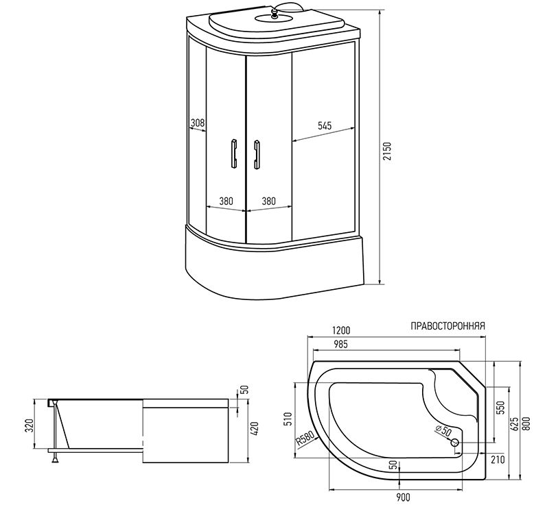 Душевая кабина ERLIT™ ER3512TPL-C2-RUS (1200*800*2150)