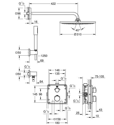 Grohtherm Набор для комплектации душа с Rainshower Cosmopolitan 310, хром 34730000