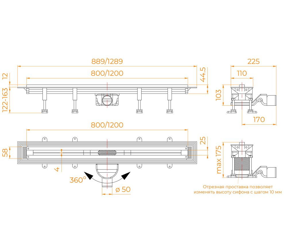 Душевой трап, обрезной RGW SDR-55B(1200)