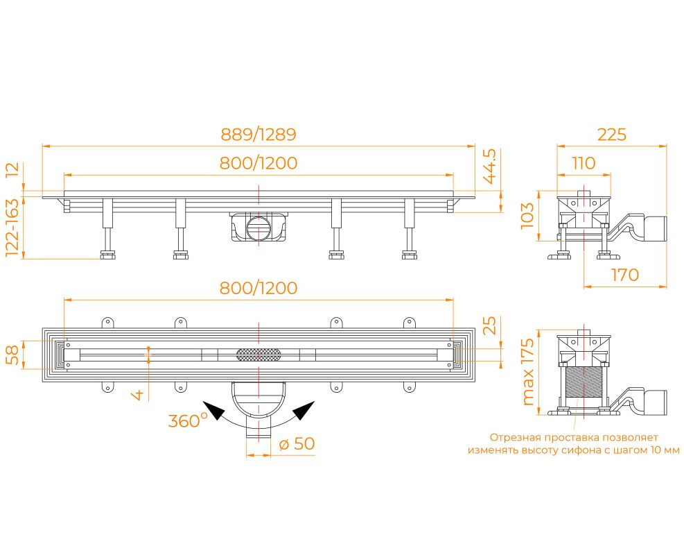 Душевой трап RGW SDR-10 квадратный(10), хром, металлическая крышка, горизонтальный слив