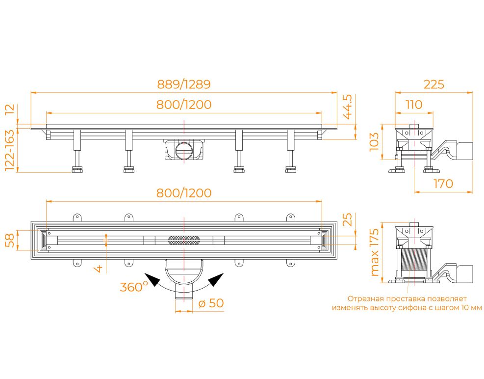 Душевой трап, обрезной RGW SDR-55B(1200)