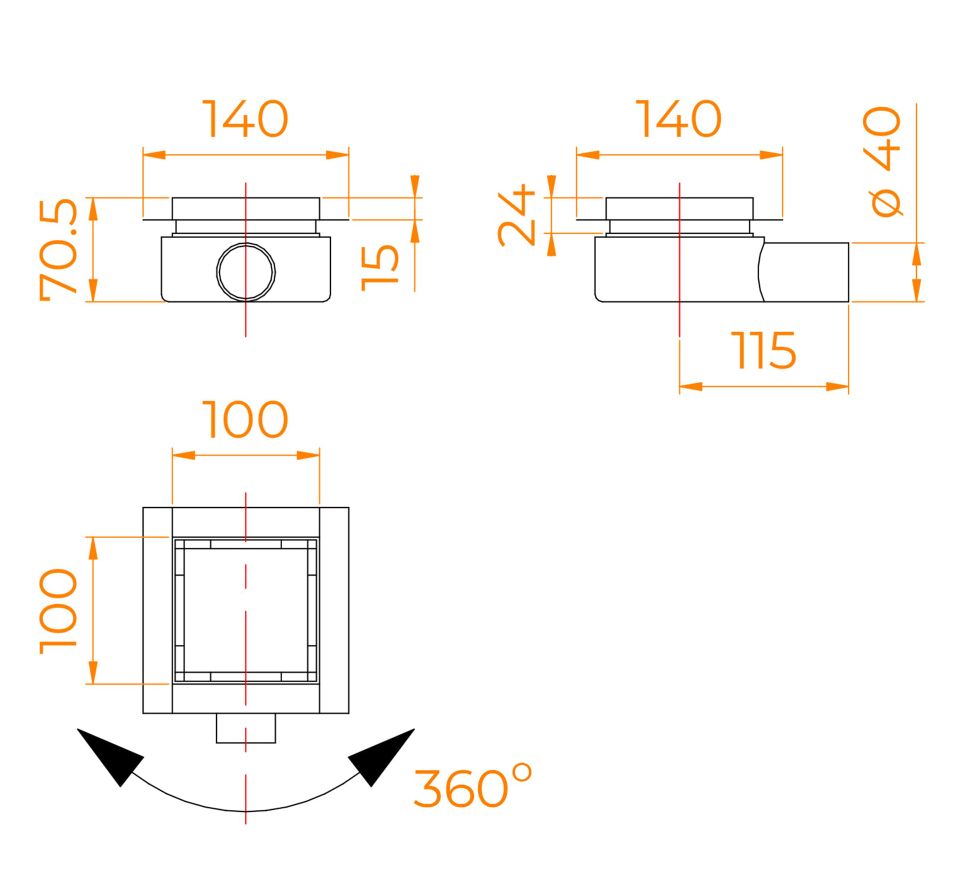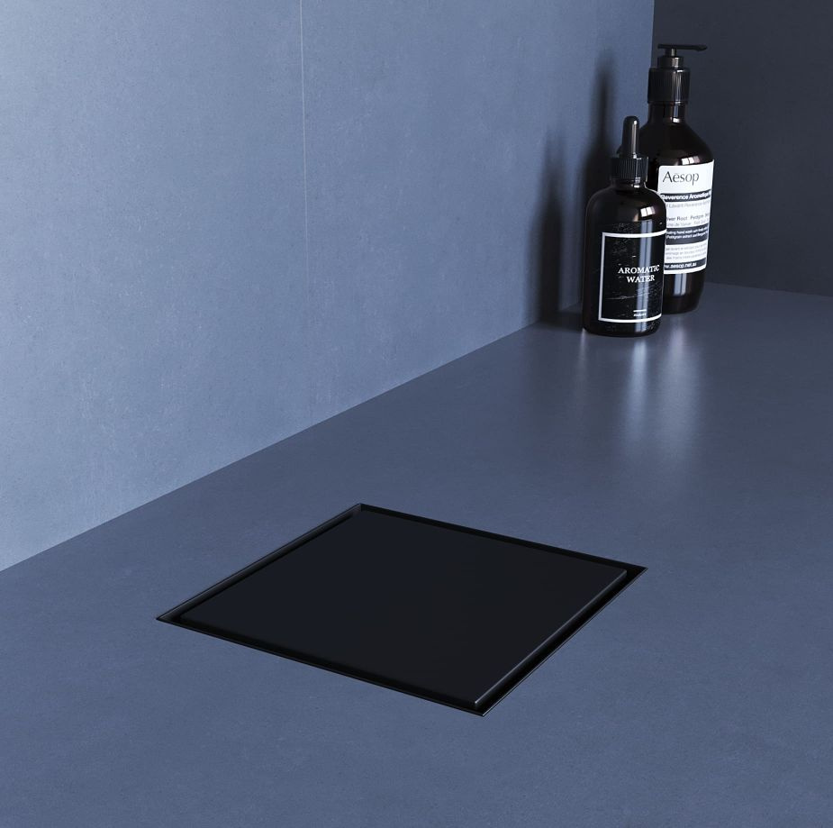 Душевой трап RGW SDR-10 квадратный, черный, металлическая крышка, горизонтальный слив