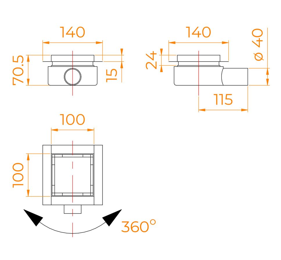 Душевой трап RGW SDR-10 квадратный(10), хром, металлическая крышка, горизонтальный слив