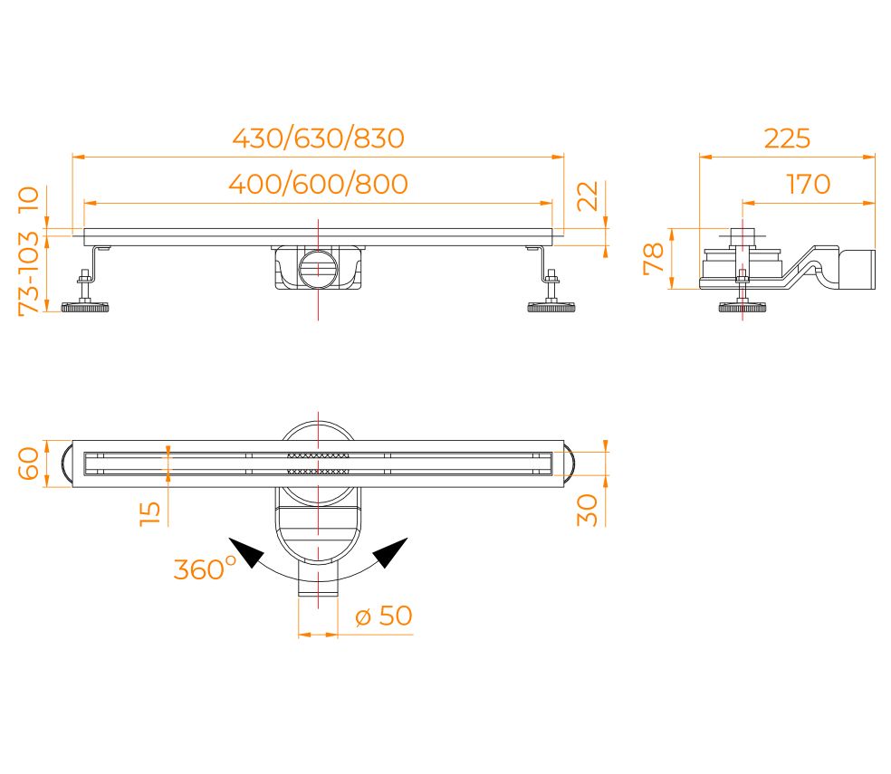 Душевой трап, обрезной RGW SDR-55B(1200)