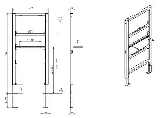 Инсталляция HYDROSMART для писсуара с креплением к полу и стене 07804.N
