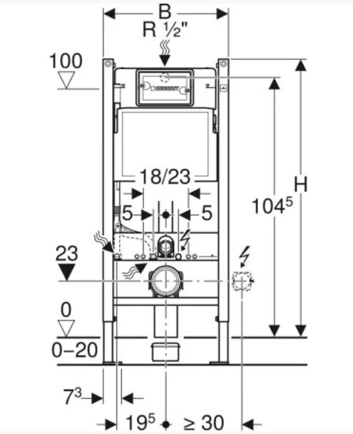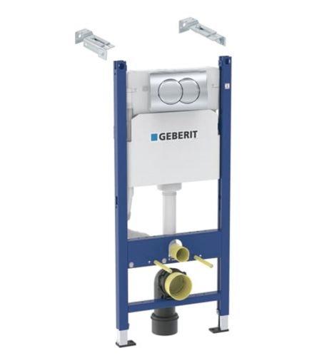 Инсталляция Geberit Duofix для подвесного унитаза, 112 см, со смывным бачком Delta 12 см, смывная клавиша Delta01, крепёж к стене, Хром 458.149.21.1