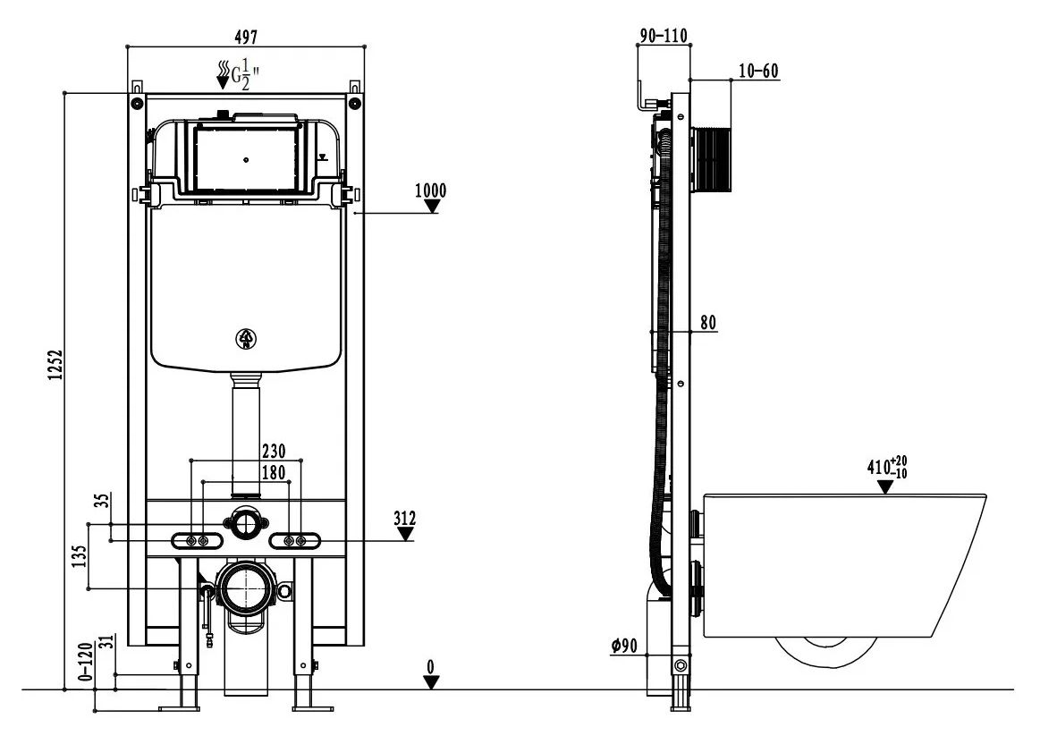 Система инсталляции ARROW для унитаза AKH1051H Arrow Smart без кнопки