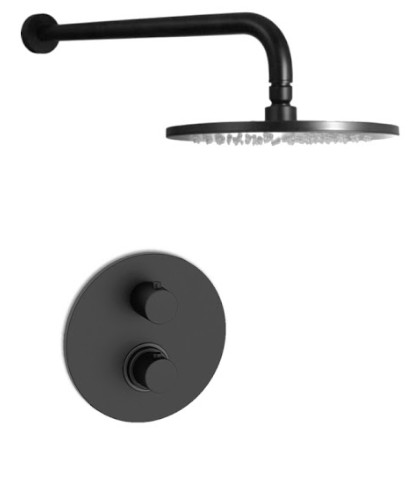 Комплект KITLIQ013NO для душа термостатический, со смесителем LIQ013NO на 1 выход, душ 225мм, LIGHT, черный матовый Paffoni