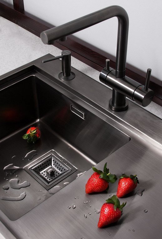 В качестве надежной и долговечной сантехники можно использовать кухонную мойку из нержавеющей стали. Ее легко установить и снять даже одному человеку. Мойка кухонная Omoikiri Akisame 65-GM-L вороненая сталь прочна, устойчива к деформациям, царапинам, красителям, активным моющим средствам. Производитель заявляет об антибактериальных и антисептических свойствах. Раковина имеет гладкую поверхность без микропор, где бы могли развиваться опасные микроорганизмы.