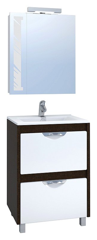 Если позволяет площадь, в санузлах устанавливают шкафы, зеркала, подвесные или напольные тумбы. Мебель для ванной Vigo Kolombo 60 белая/венге имеет компактные размеры. На полках можно хранить шампуни, нижнее белье, полотенца, косметические принадлежности, хозяйственный инвентарь. Все элементы обладают прочной и надежной конструкцией. Для изготовления комплектов/наборов мебели для ванной используют только экологически чистые, влагостойкие материалы.
