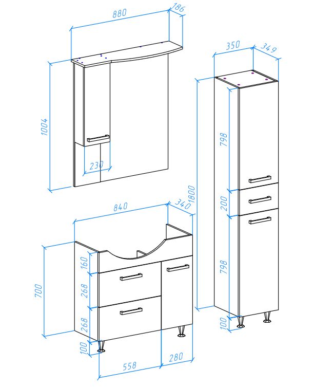Санриса-35 пенал подвесной с 2 ящ. белый лев./прав.