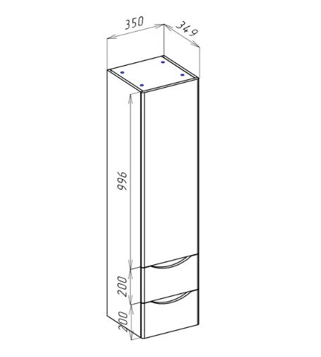 Санриса-35 пенал подвесной с 2 ящ. серебро (ПВХ) лев./прав.