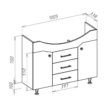 Джулия-105 тумба с 2 ящ. белая (ЭЛЕГАНС)