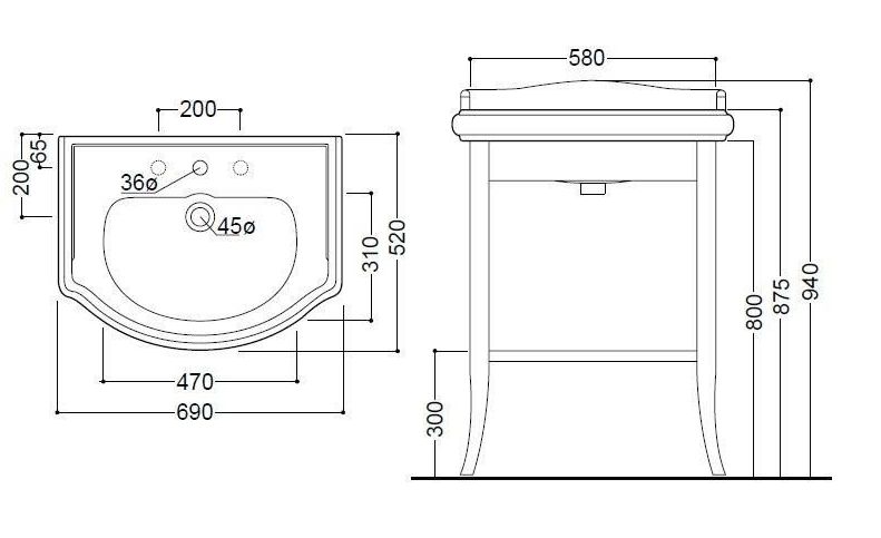 Kerasan Retro Тумба открытая под раковину на 69 см, напольная 69x52x80h см, цвет: Bianco matt 735030