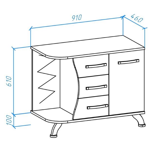 Рио-90 тумба с 3 ящ. комбин. черая/белая прав.