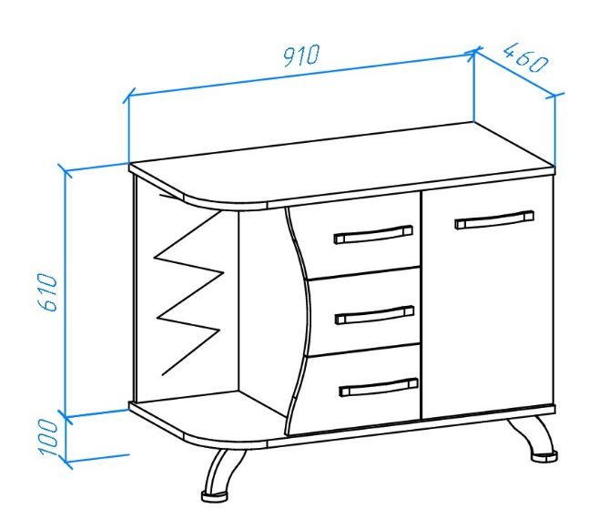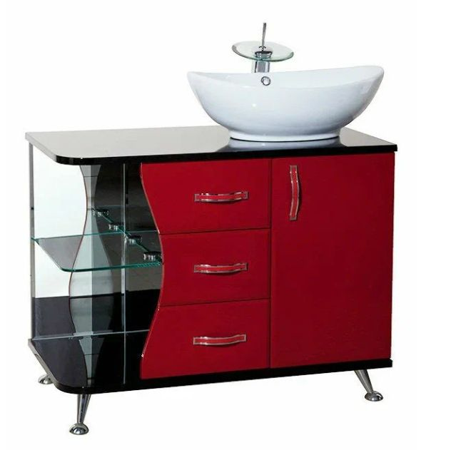 Рио-90 тумба с 3 ящ. комбин. черная/красная прав.