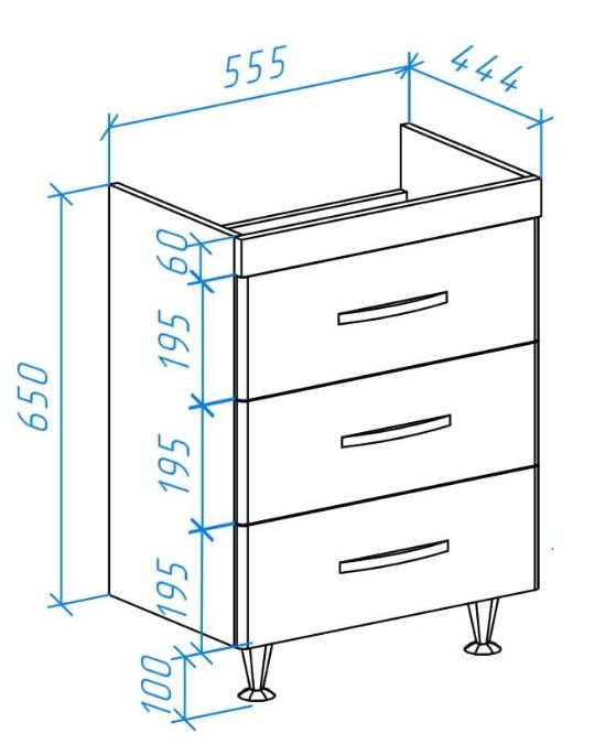Рокко-60 тумба с 3 ящ. белая Н (ТИГОДА)