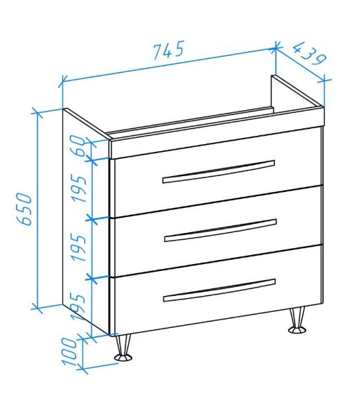 Рокко-80 тумба с 3 ящ. белая Н (ТИГОДА)