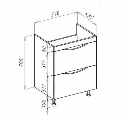 Санриса-60 тумба с 2 ящ. белая (СТРИМ)