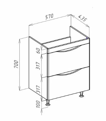 Санриса-60 тумба с 2 ящ. орех (ПВХ) (СТРИМ)