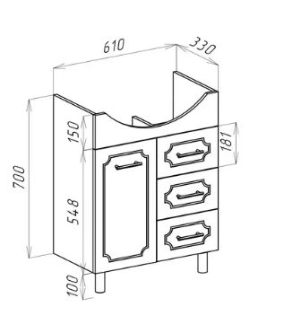 Санриса-60 тумба подвесная с 2 ящ. орех (ПВХ) (СТРИМ)