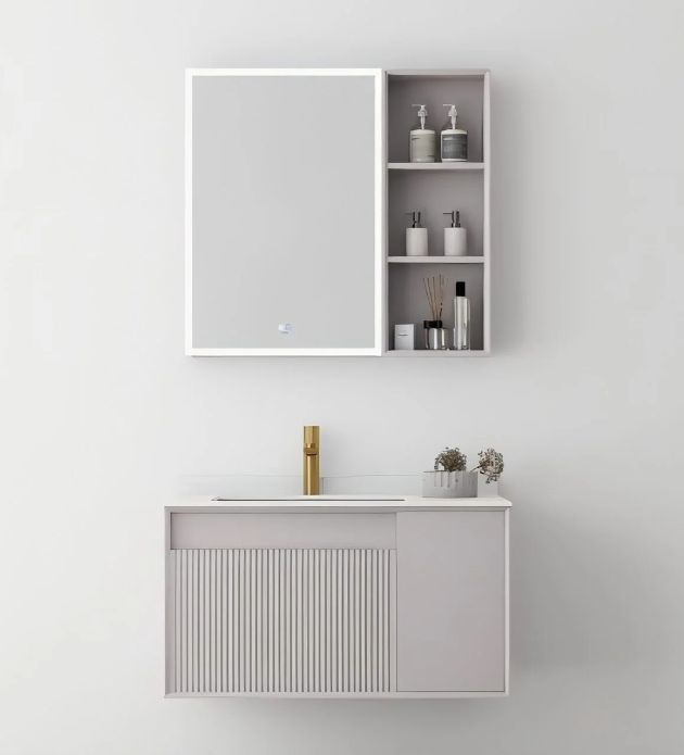 Тумба под раковину Arrow 100 для ванной комнаты, тауп (большой выдвижной шкаф и одна распашная дверь) 28101101000698/1 (AUDD10G4008-C)