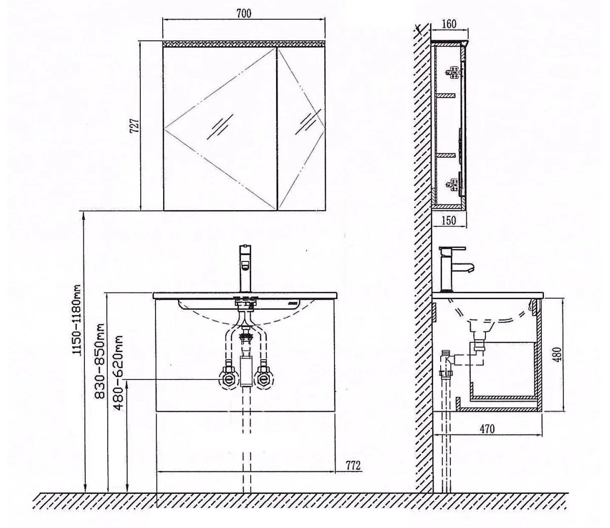 Тумба под раковину со столешницей Arrow 80 подвесная, кремовый матовый ADGMD8G31008F-XZ