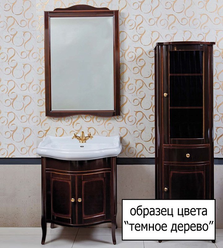 Для хранения кремов, шампуней, гелей для душа или других гигиенических средств в ванных комнатах устанавливают тумбу. Ее изготавливают из экологичных, устойчивых к воде, конденсату и перепадам температур материалов. Мебель для влажных помещений оборудуют антикоррозийной фурнитурой. Тумба для комплекта La Beaute Lorette 65 темное дерево, фурнитура бронза имеет высокое качество, что подтверждают европейские и российские сертификаты.