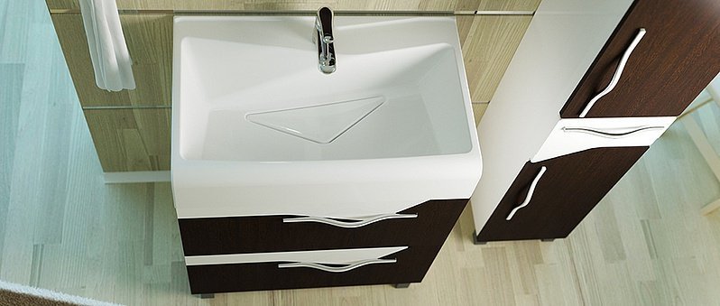 В ящиках и отделениях тумбы с раковиной можно хранить косметические средства, бытовую химию, мусорное ведро, разнообразные аксессуары. Она удобна для постоянного использования в любой ванной комнате. Тумба с раковиной Мебель для ванной Velvex Crystal 70 венге скрывает трубы, провода, недостатки ремонта. Ее производят из устойчивых к высокой влажности материалов.