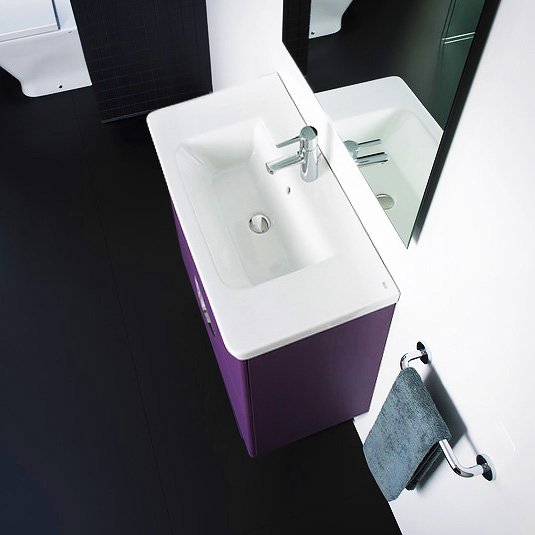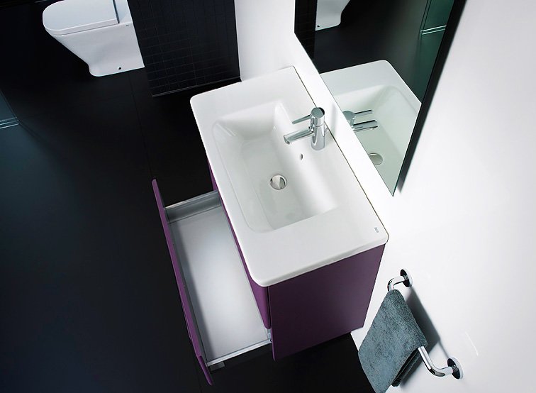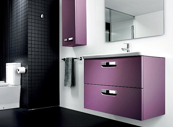 В ящиках и отделениях тумбы с раковиной можно хранить косметические средства, бытовую химию, мусорное ведро, разнообразные аксессуары. Она удобна для постоянного использования в любой ванной комнате. Тумба с раковиной Roca Gap 70 фиолетовая скрывает трубы, провода, недостатки ремонта. Ее производят из устойчивых к высокой влажности материалов.