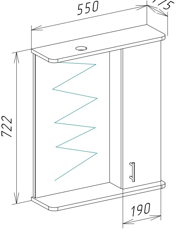 Нарцисс-55 зеркало-шкаф прав.(свет.)