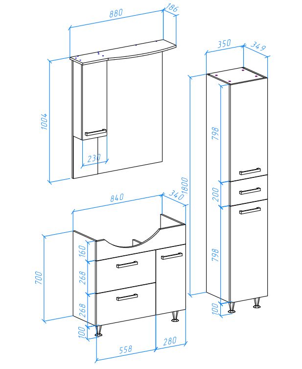 Балтика-90 зеркало-шкаф белое лев. (свет.)