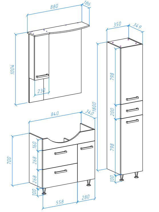 Балтика-90 зеркало-шкаф белое прав. (свет.)