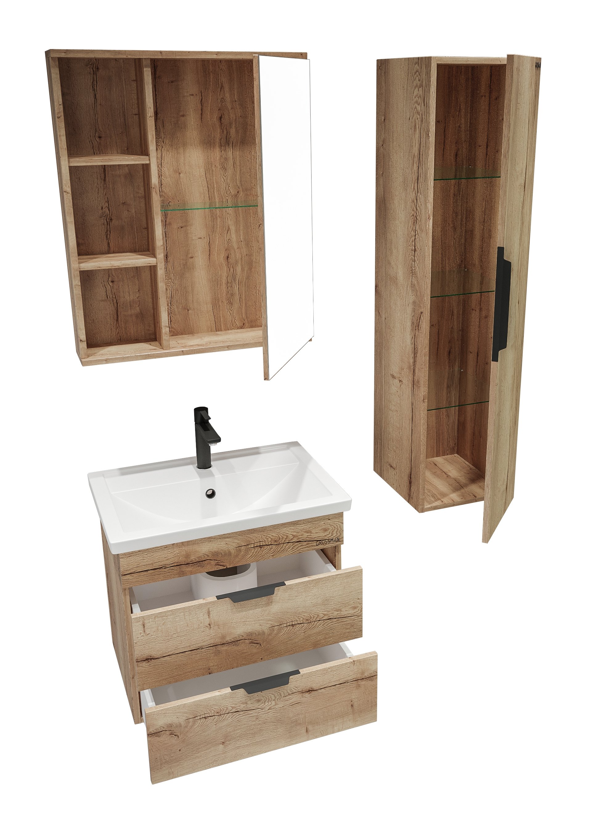 Шкаф-зеркало "ФОРТА-60 см" универсал. дуб галифакс