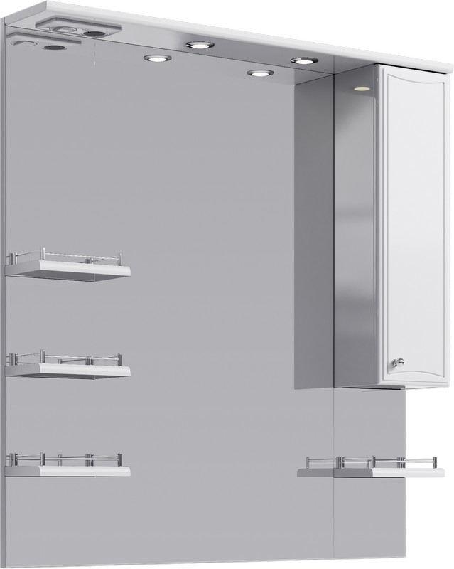 Зеркало с полочками,шкафчиком,а также светодиодной подсветкой,выключателем и розеткой